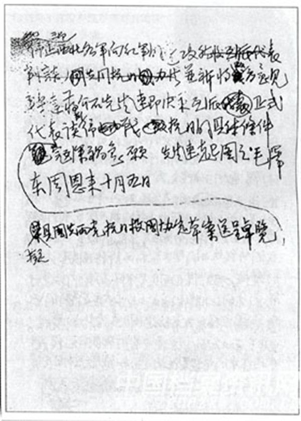 一九三六年十月五日,毛泽东、周恩来关于停止内战互派代表谈判等问题致张学良的信。
