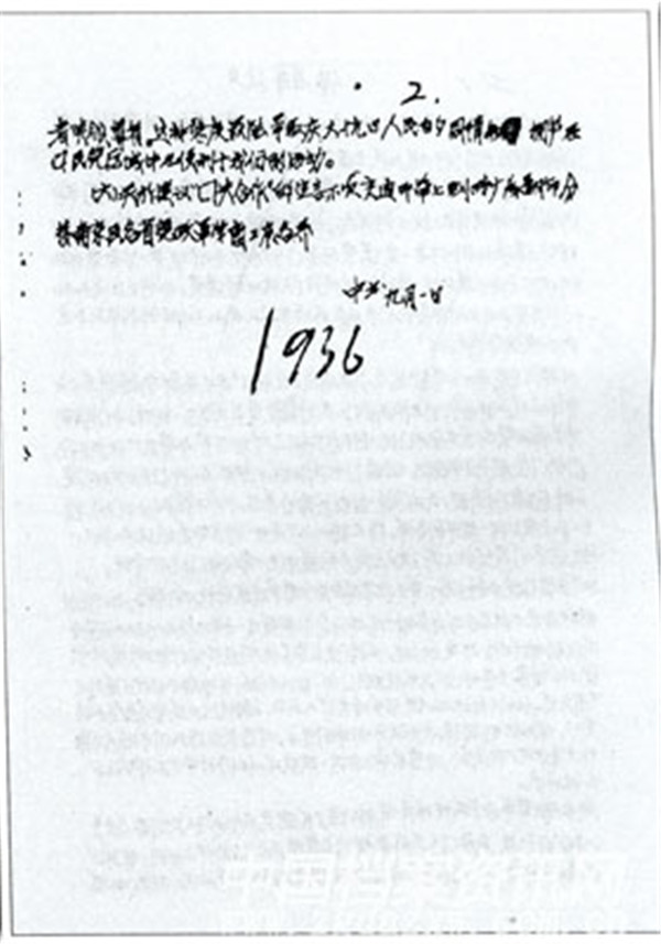 1936年12月21日,中央书记处为调停西安事变给周恩来的指示电。