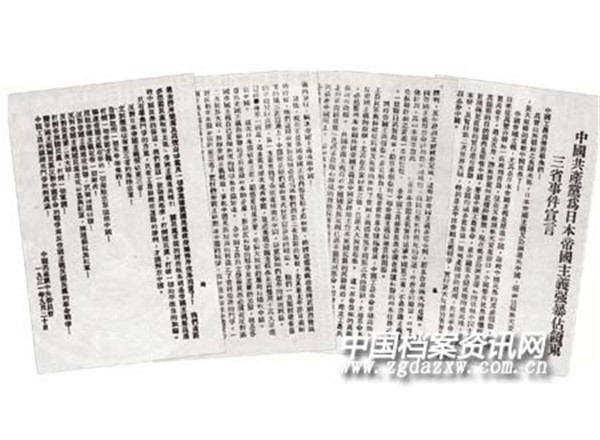 1931年9月20日,《中国共产党为日本帝国主义强暴占领东三省事件宣言》。