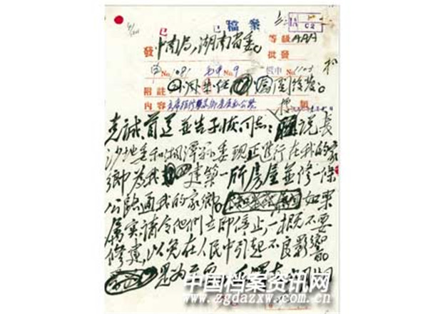 1950年9月20日,毛泽东在关于不要在家乡为他盖房修路给黄克诚等人的电报中明确指出:“如果属实,请令他们立即停止,一概不要修建,以免在人民中引起不良影响。是为至要。”