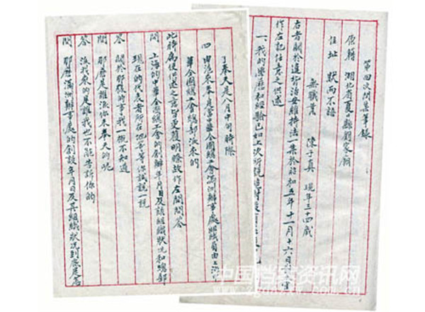 1929年10月3日,杨靖宇(化名张贯一)在狱中的审讯笔录及堂单。