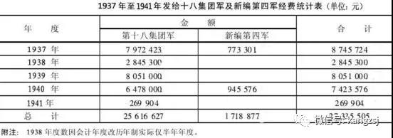 1937年8月~1941年1月,国民政府共支付八路军、新四军及华南游击队军饷2733.5万元法币(相当于684.5万美元)。而中央军一个甲等野战师的军费每月也才约20万元。但是很快无法满足八路军快速扩军的需要。