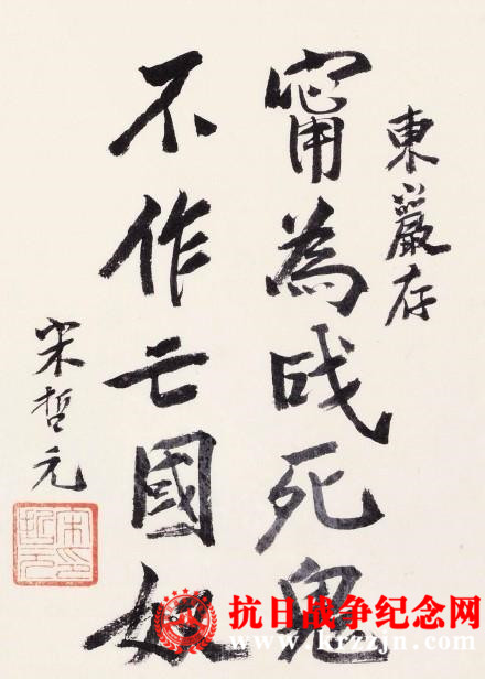 此后,宋哲元历任第1集团军总司令、第一战区副司令长官等职,指挥所部在河北、山东等地抗击日军。1938年春,宋哲元以健康原因提出辞呈,转任国民政府军事委员会委员,他致书勉励官兵“勇往直前,努力杀贼,抱着我作牺牲者,人作成功者的决心,向前迈进,宁死不当亡国奴,必操最后之胜利”。1940年4月5日,宋哲元在四川绵阳病逝,享年55岁。