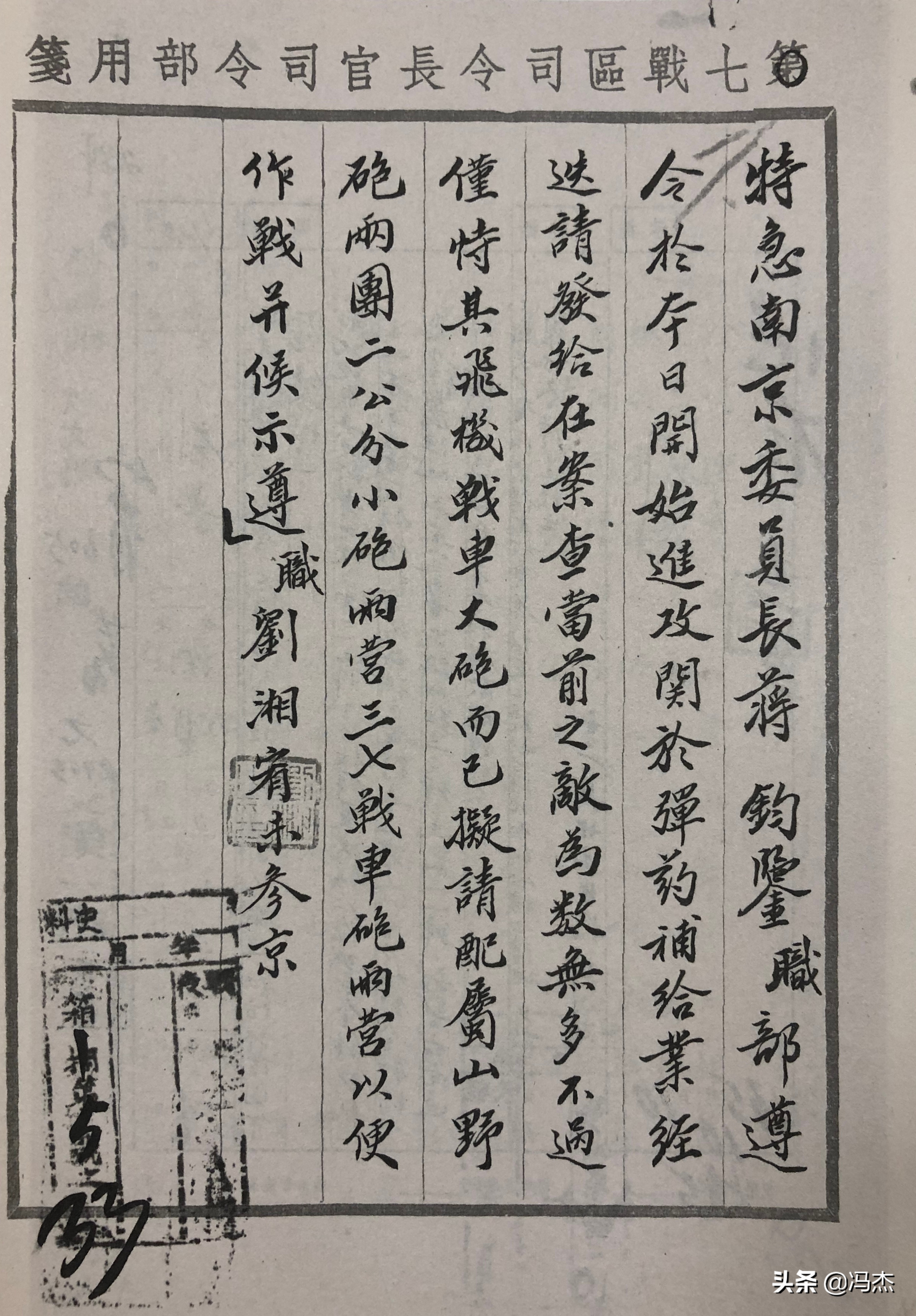 抗战时期的军事长官发布作战命令及报告战况文电,大体上就是这样的文本格式,感谢档案工作者的辛勤付出,几十年我们还能看到如此清晰的原始文献,当然要加倍努力做好抗战史研究。