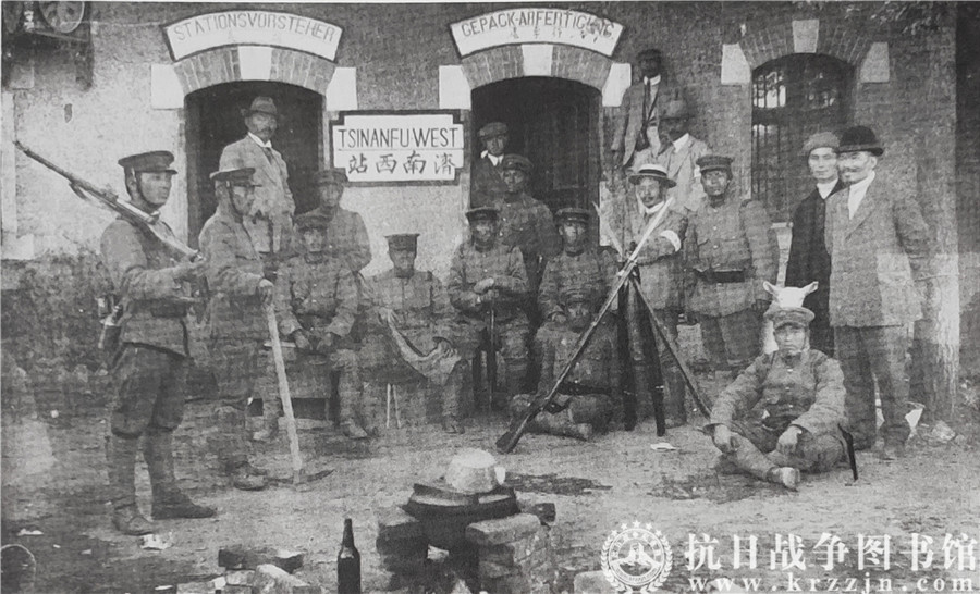 4.1914年10月7日,占领胶际铁道西端济南车站的日军。(《历史写真贴》大正卷)
