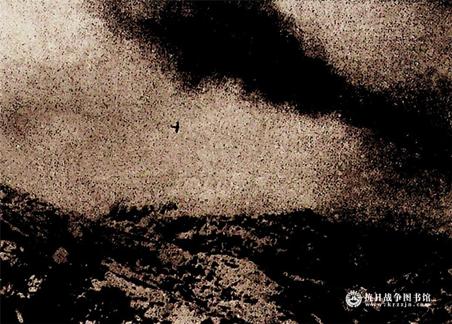 图11-27 日机在杭州宝石山被中国空军击落的一刹那。[建]