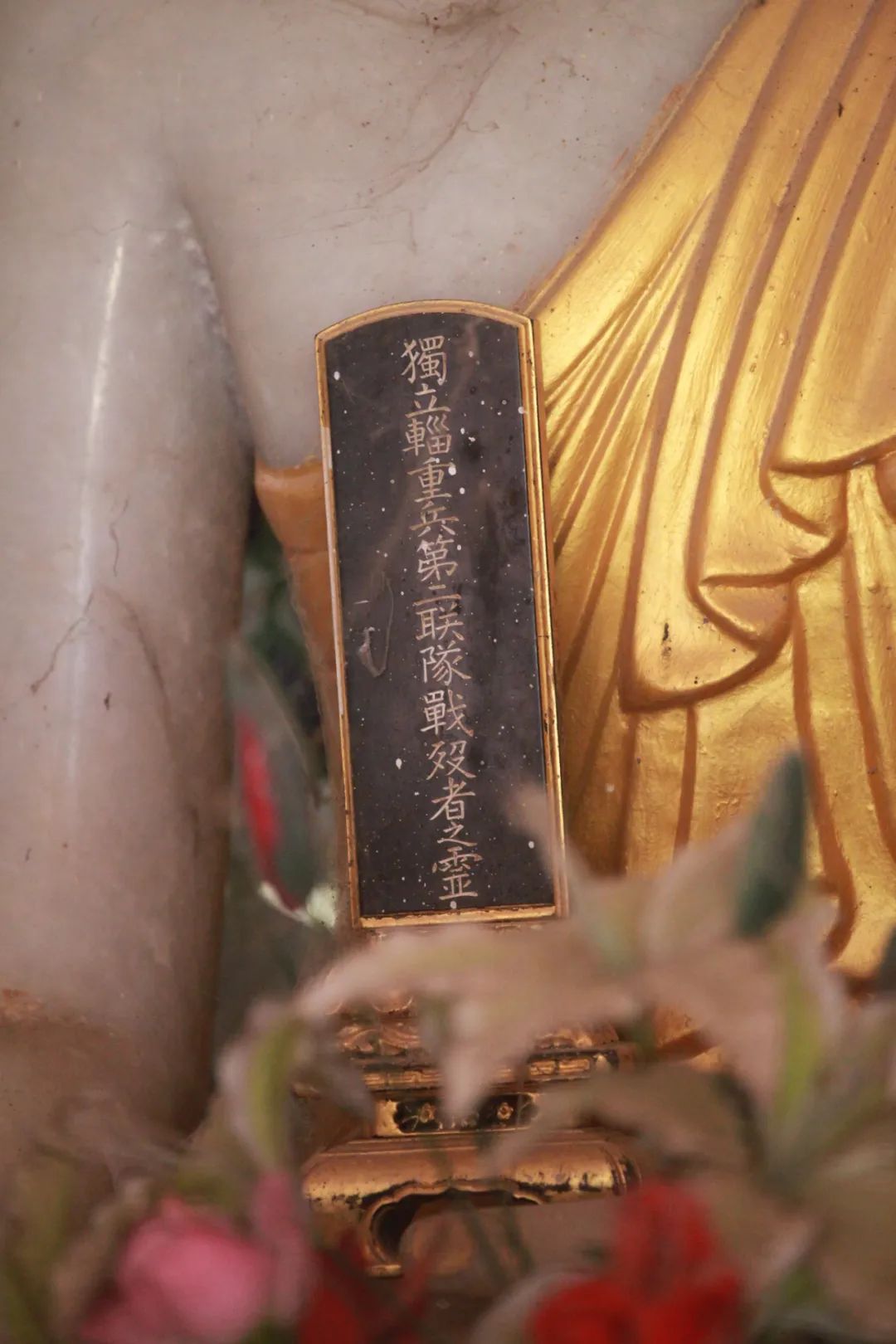 也是在这个地方,我看到一个佛像手里端着一个牌位,我用相机的长镜头拉近一看,上面竟然写着:独立辎重兵第二联队战殁者之灵。