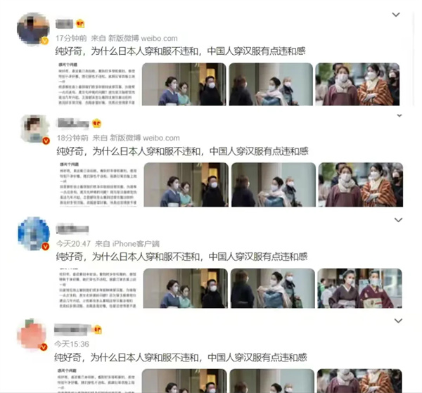 “纯好奇,为什么日本人穿和服不违和,中国人穿汉服有点违和感。”