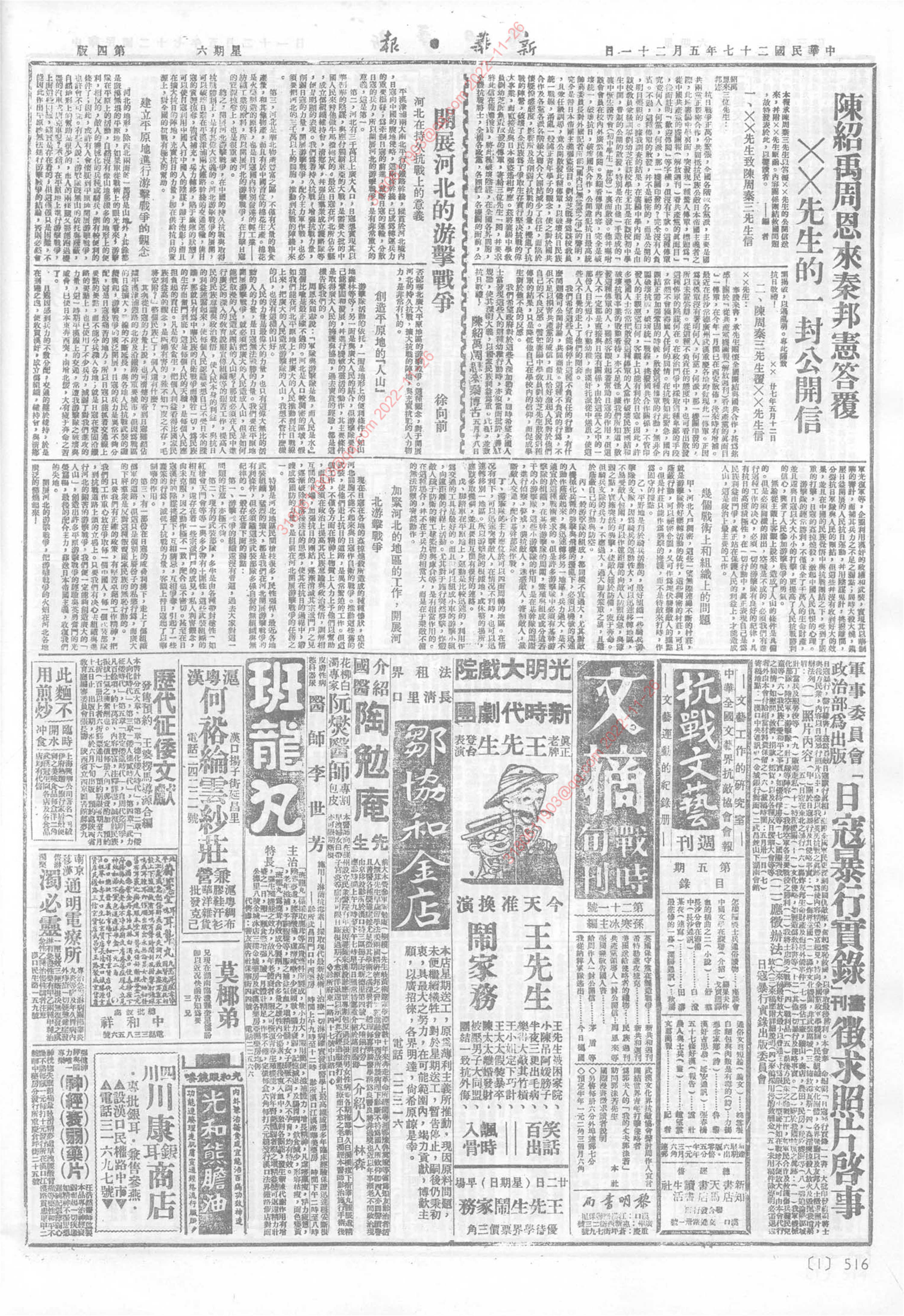在发展抗日民族统一战线和爱国民主统一战线方面,《新华日报》也做了大量工作。用大量版面,为民主党派和各界知名人士提供一个比较自由的讲坛。冯玉祥将军和郭沫若、茅盾、柳亚子、沈钧儒、黄炎培、邓初民、陶行知、张西曼、胡厥文、胡子昂等学者、教授和社会活动家,经常为此报撰稿。马寅初曾在"友声"专栏发表文章,痛斥国民党的腐败,呼吁"建立一个真正民主的国家"。它的副刊是进步文化运动的重要阵地,团结了一大批优秀的文学艺术和文化工作者。它的国际报导也很有特色。1942年底﹐根据周恩来的指示,开设了"国际述评"专栏,由乔冠华主笔。这个专栏的文章以资料翔实、分析透彻、富于哲理和文采而受到读者欢迎,经常为外国通讯社所转载。