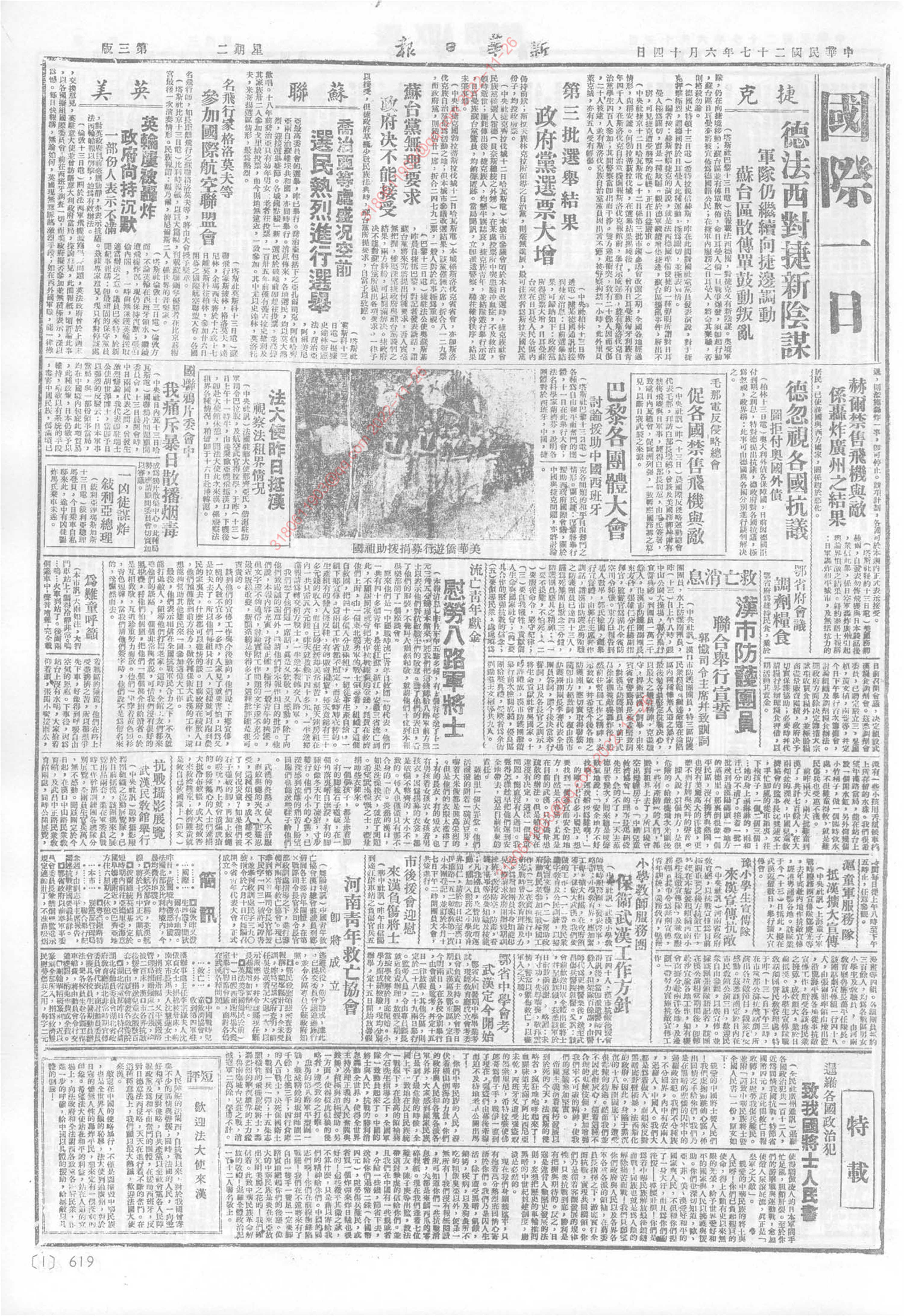 《新华日报》最早在抗日战争时期和解放战争初期(1938年1月11日-1947年2月28日)是中国共产党的大型机关报,它是由周恩来等老一辈无产阶级革命家在河北涉县一二九师司令部亲自创办的、中国共产党第一张在全国公开发行的报纸并一直持续至1947年2月28日。1937年,国共开始第二次合作。中国共产党与国民党当局商定,在南京公开发行中共党报《新华日报》。但是因为顽固派阻挠及日军逼近,报社被迫迁至武汉成忠街53号。延至1938年1月11日,《新华日报》正式在武汉创刊。正式创刊后,报社迁至汉口大陆里。发行部则设大陆里临街的平房内(原建筑已改建)。该报在武汉期间,属中国共产党长江局领导。