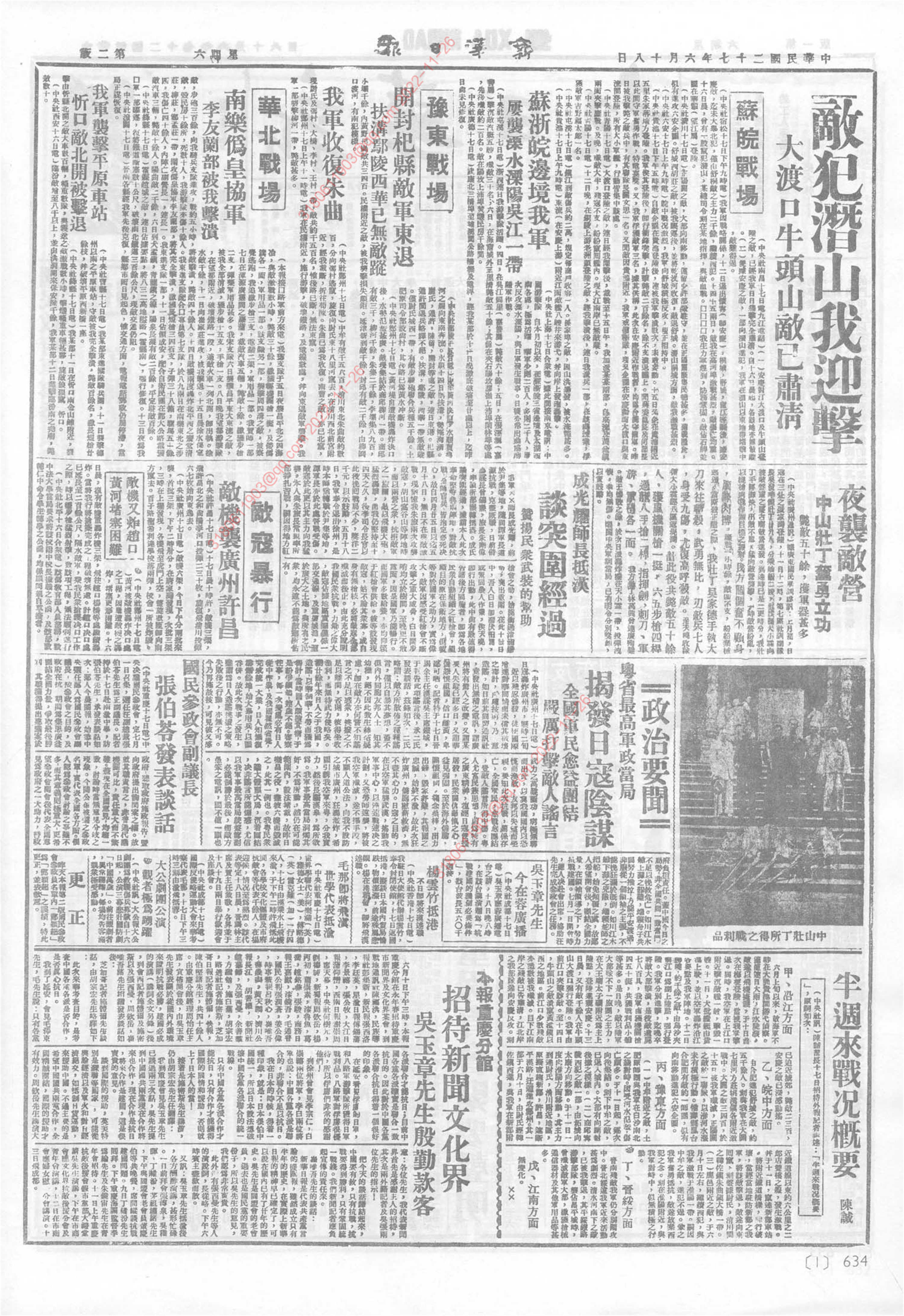 《新华日报》最早在抗日战争时期和解放战争初期(1938年1月11日-1947年2月28日)是中国共产党的大型机关报,它是由周恩来等老一辈无产阶级革命家在河北涉县一二九师司令部亲自创办的、中国共产党第一张在全国公开发行的报纸并一直持续至1947年2月28日。1937年,国共开始第二次合作。中国共产党与国民党当局商定,在南京公开发行中共党报《新华日报》。但是因为顽固派阻挠及日军逼近,报社被迫迁至武汉成忠街53号。延至1938年1月11日,《新华日报》正式在武汉创刊。正式创刊后,报社迁至汉口大陆里。发行部则设大陆里临街的平房内(原建筑已改建)。该报在武汉期间,属中国共产党长江局领导。