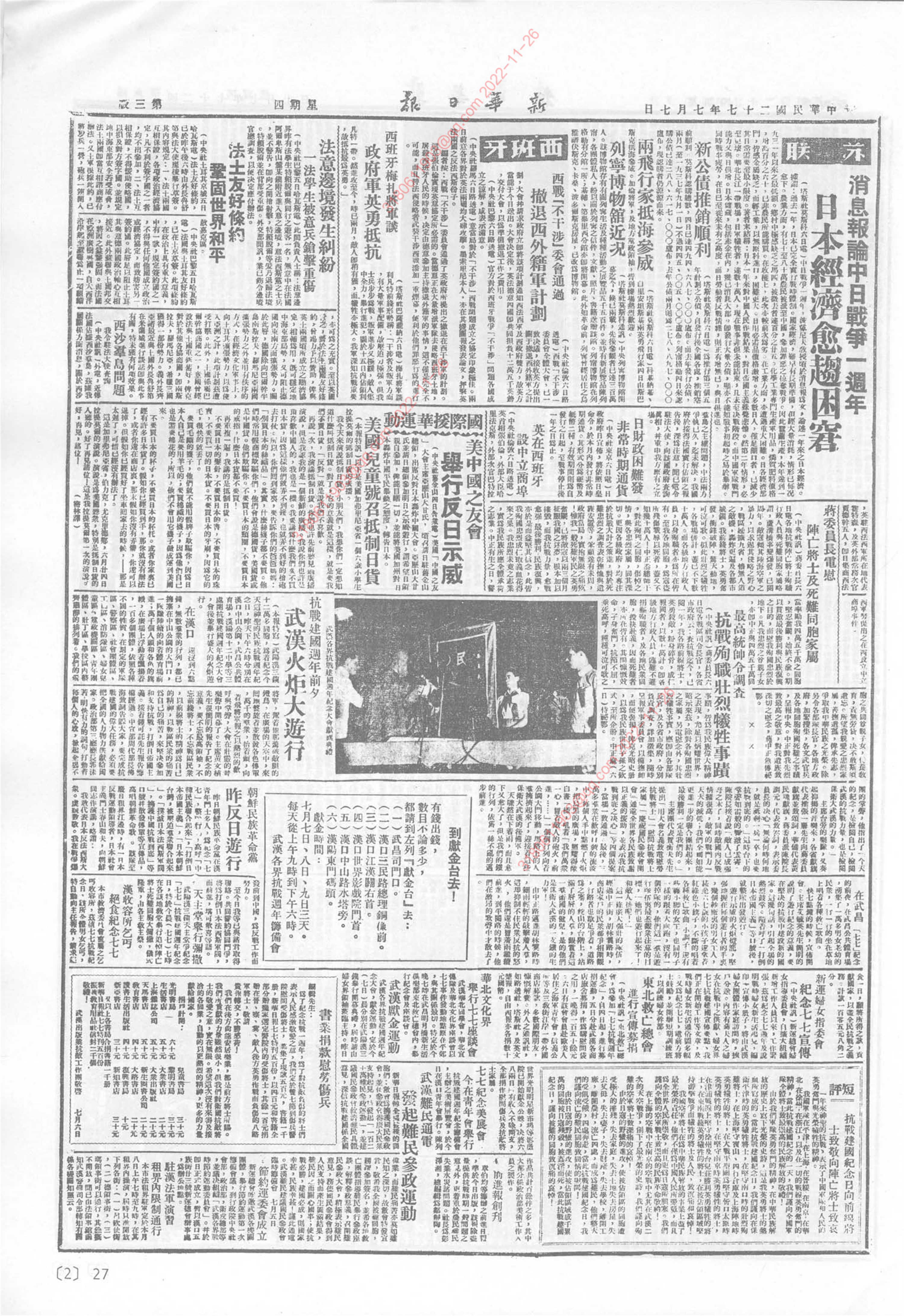 《新华日报》最早在抗日战争时期和解放战争初期(1938年1月11日-1947年2月28日)是中国共产党的大型机关报,它是由周恩来等老一辈无产阶级革命家在河北涉县一二九师司令部亲自创办的、中国共产党第一张在全国公开发行的报纸并一直持续至1947年2月28日。1937年,国共开始第二次合作。中国共产党与国民党当局商定,在南京公开发行中共党报《新华日报》。但是因为顽固派阻挠及日军逼近,报社被迫迁至武汉成忠街53号。延至1938年1月11日,《新华日报》正式在武汉创刊。正式创刊后,报社迁至汉口大陆里。发行部则设大陆里临街的平房内(原建筑已改建)。该报在武汉期间,属中国共产党长江局领导。