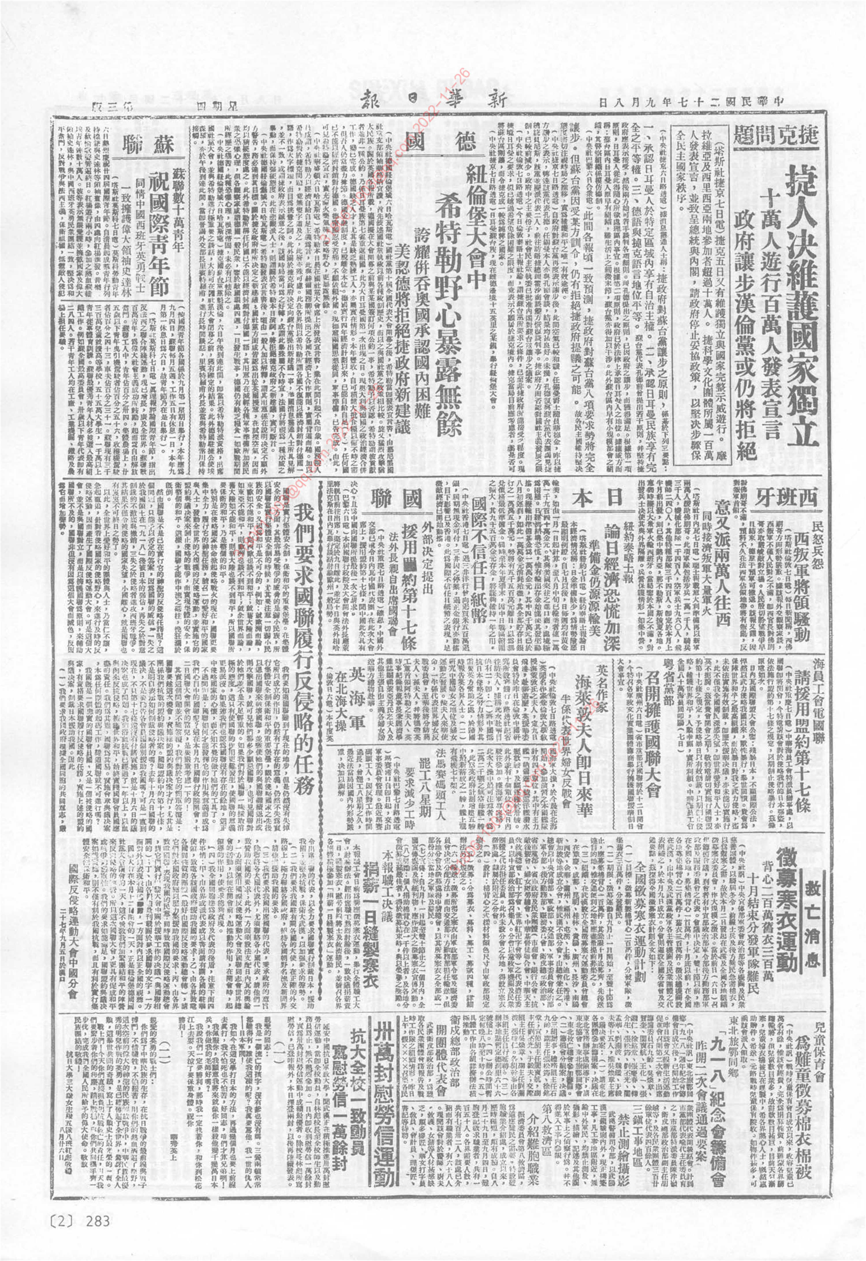 《新华日报》1938年9月8日03