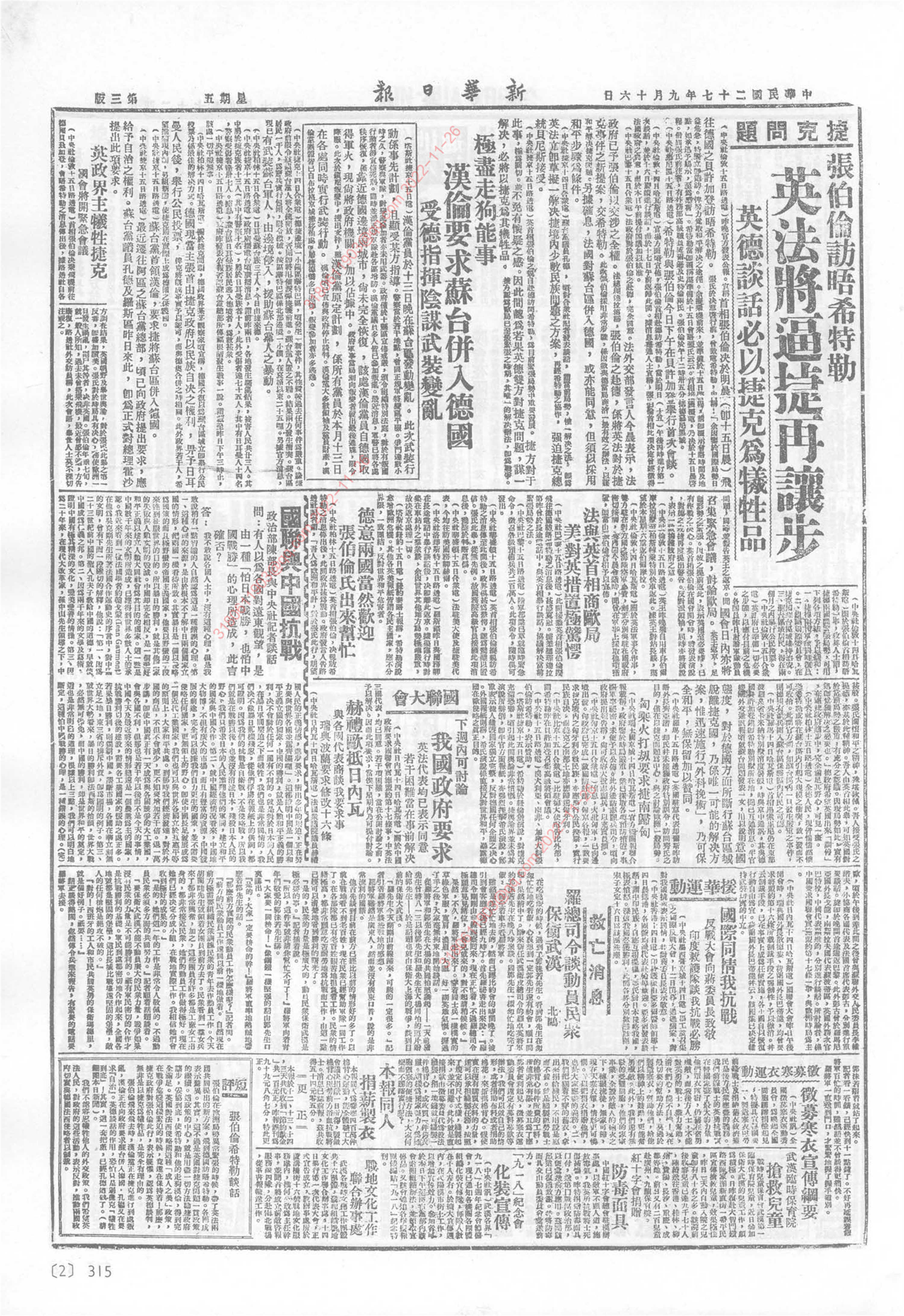 《新华日报》1938年9月16日03