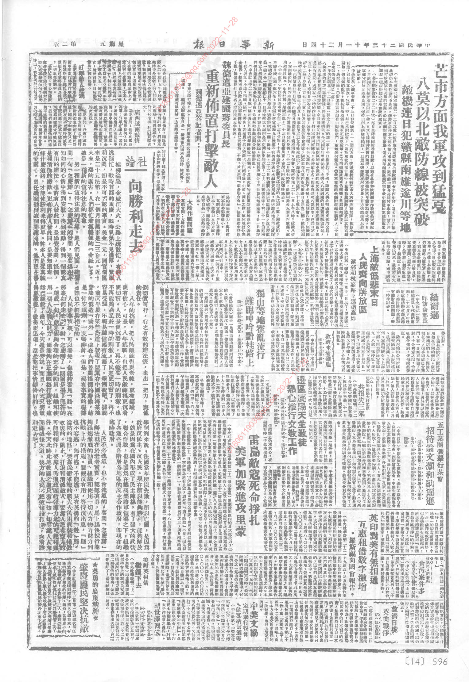 《新华日报》最早在抗日战争时期和解放战争初期(1938年1月11日-1947年2月28日)是中国共产党的大型机关报,它是由周恩来等老一辈无产阶级革命家在河北涉县一二九师司令部亲自创办的、中国共产党第一张在全国公开发行的报纸并一直持续至1947年2月28日。1937年,国共开始第二次合作。中国共产党与国民党当局商定,在南京公开发行中共党报《新华日报》。但是因为顽固派阻挠及日军逼近,报社被迫迁至武汉成忠街53号。延至1938年1月11日,《新华日报》正式在武汉创刊。正式创刊后,报社迁至汉口大陆里。发行部则设大陆里临街的平房内(原建筑已改建)。该报在武汉期间,属中国共产党长江局领导。