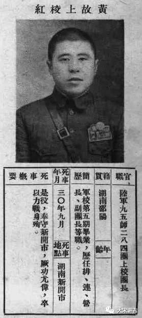 黄埔5期生中的抗战牺牲者(三十一):黄红(1904-1941年9月),字:心素,湖南邵阳县双泉铺观音阁人,国民党员;最高职务或军衔:国民革命军第37军第95师第284团团长,上校军衔。