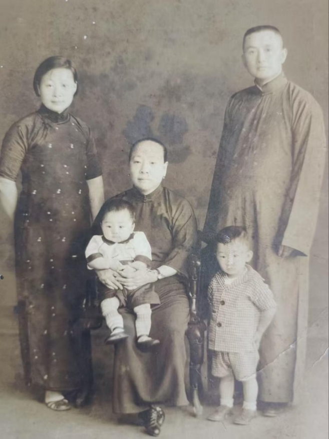【1935年,乔茂材和夫人施瑞芸(左一)及家人合影】