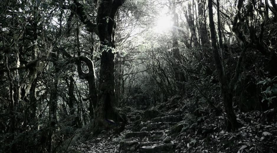 “那个原始森林,无边无际,像海一样的,走不到边,看不到边,也看不到头,山峰就像个天柱一样的插到云上头去,周围的山包,就像海浪一样的,一波一波的。千百年的树,叶子枝子都搭起来了,阳光都透不过,黑洞洞的、灰蒙蒙的,闷得要死。要是看到筛子那么大的一块天空,人都好像有精神些。”刘桂英回忆。