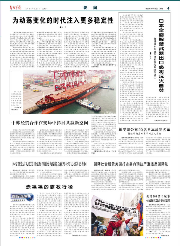 高市政府大幅松绑武器出口的行径,将使日本走向贩卖战争、借战牟利的危险道路。国际社会尤其是亚洲邻国必须高度警惕。