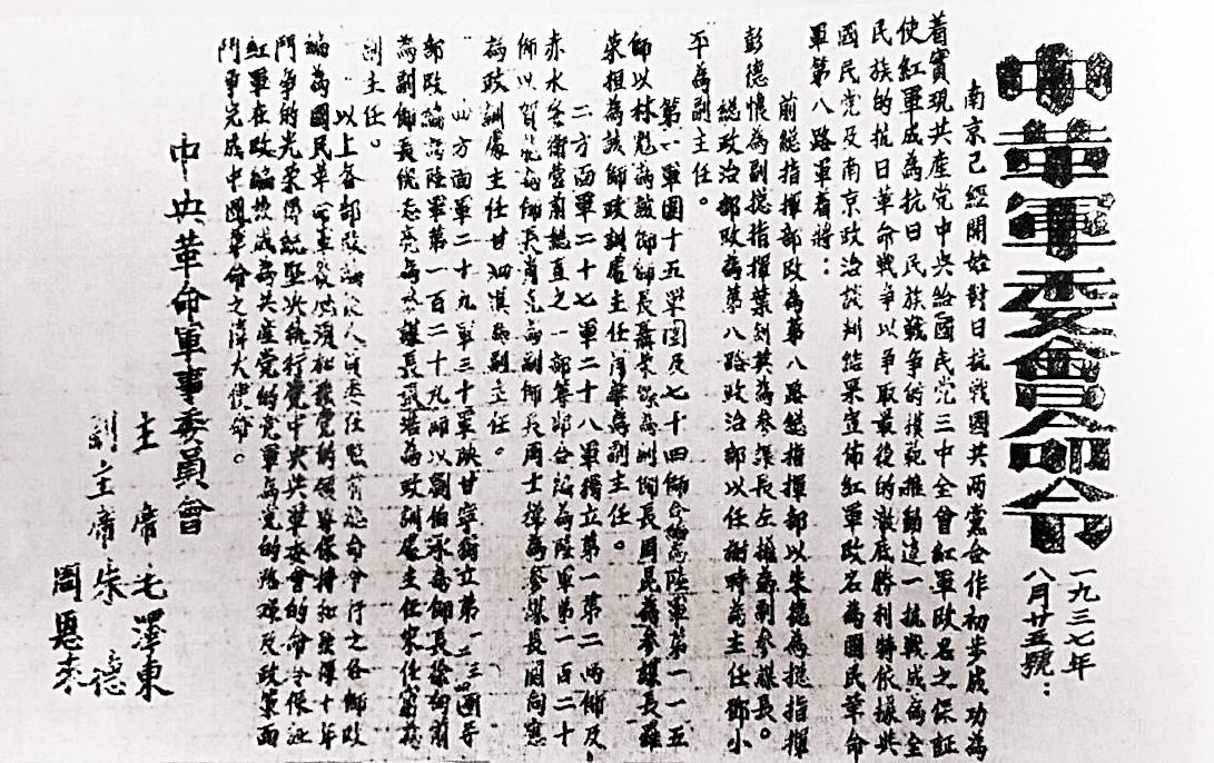 1937 年8月25日,中共中央革命军事委员会命令中国工农红军改编为国民革命军第八路军。9 月, 改称国民革命军第十八集团军。
