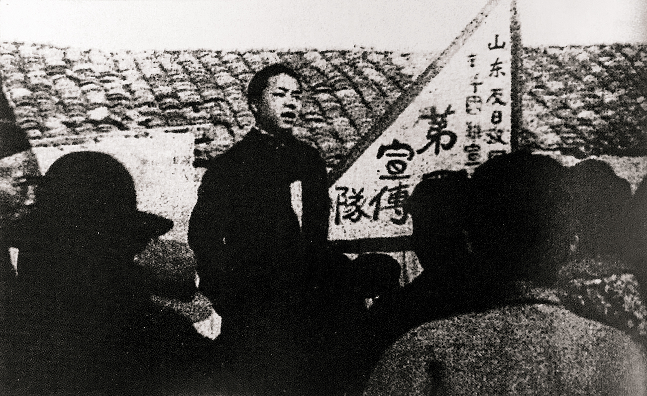 山东抗日救亡运动日益高涨,爱国学生走上街头宣传抗日。