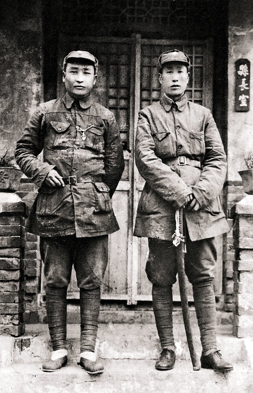 按照“三三制”民主政权建设原则,山东各地普遍建立起抗日民主政权。图为垦利县抗日民主政府县长刘季青(左) 与工作人员合影。