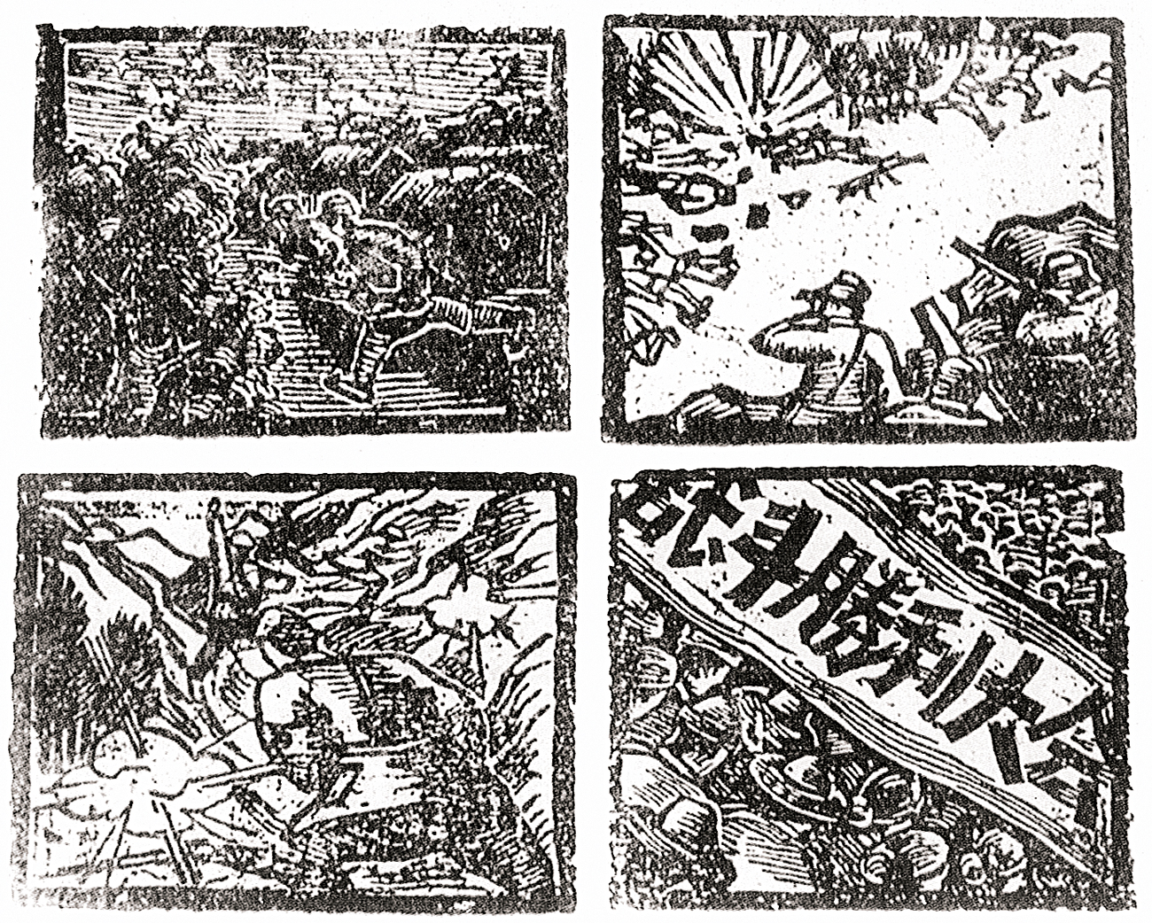 1940年,由王绍洛创作的反映孙祖大捷的木刻组画,发表于《军政杂志》。