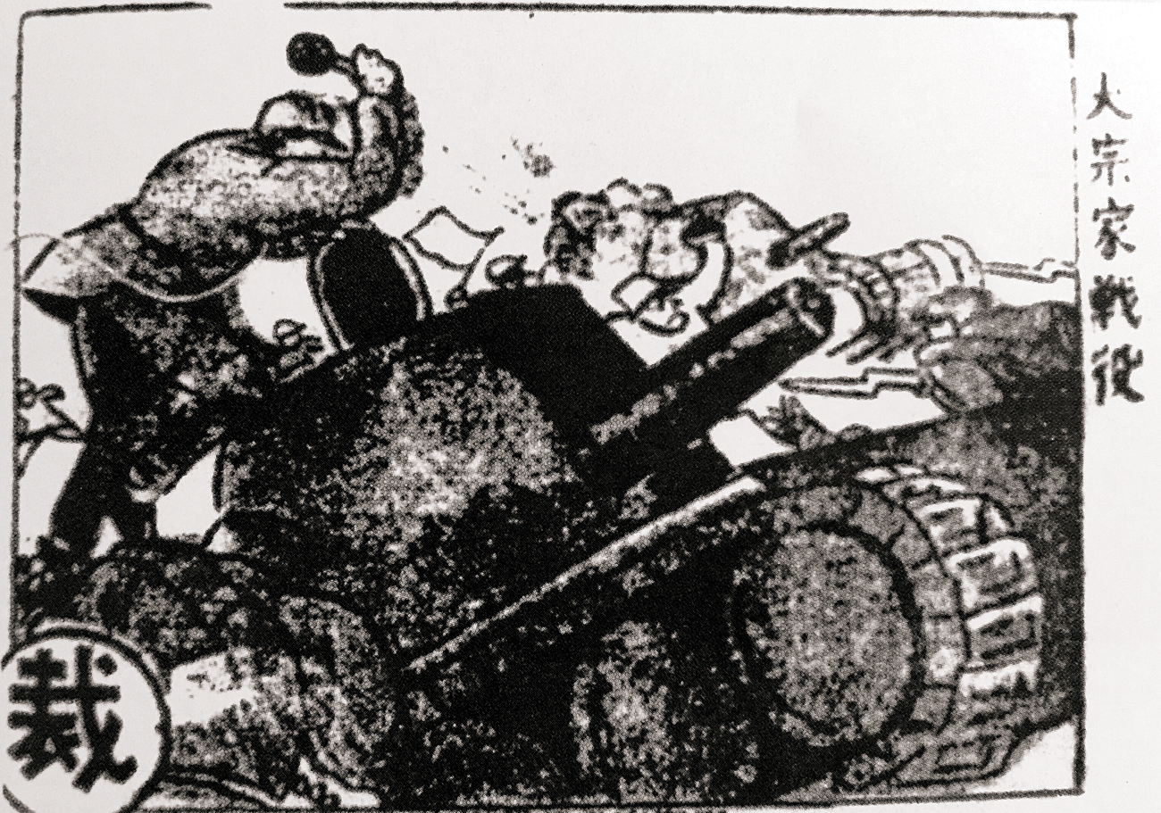 1939年4月1日,八路军东进抗日挺进纵队第五支队机关及第五团在陵县大宗家一带被日军第五师团包围,突围中毙伤日军旅团长安田大佐以下多人。八路军东进抗日挺进纵队第五团政委曾庆洪、特派员谢家树、政治处主任朱挺先等英勇牺牲。图为《渤海日报》刊登的大宗家战斗宣传画。
