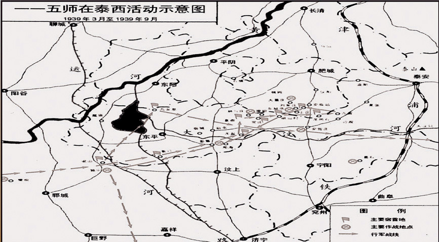 八路军一一五师在泰西活动示意图(1939年3月至9月)