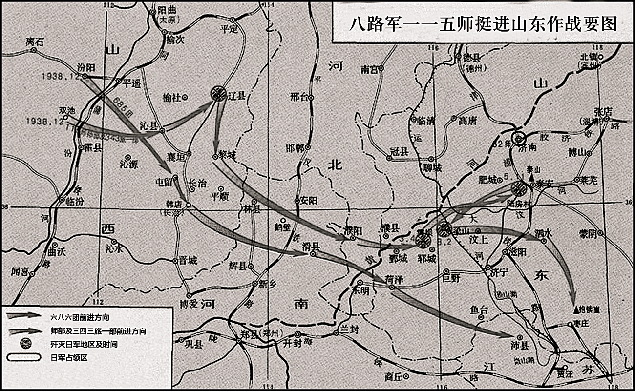 八路军一一五师挺进山东作战要图(1938年12月至1939年9月)