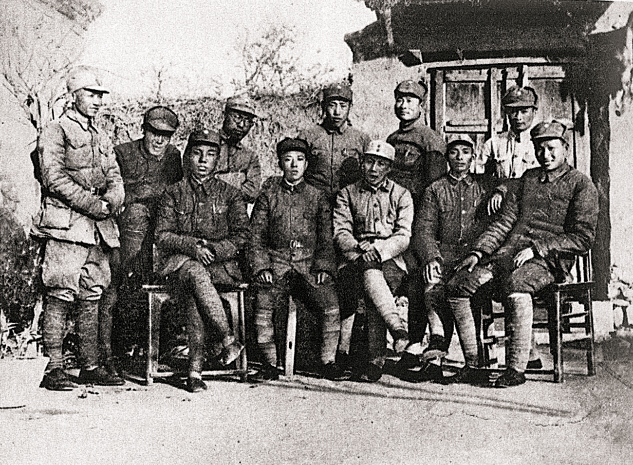 中共中央十分重视山东抗日根据地的创建工作。1938年9月,毛泽东在中共六届六中全会上提出“派兵到山东”。根据中共中央的战略部署,1938年7月至1939年9月,八路军一一五师主力部队先后挺进冀鲁边区、鲁西北、湖西、鲁西、鲁南等广大地区,为创建山东抗日根据地作出了重大贡献。图为八路军一一五师东进山东前,在部队驻地召开干部会议与会人员的合影。