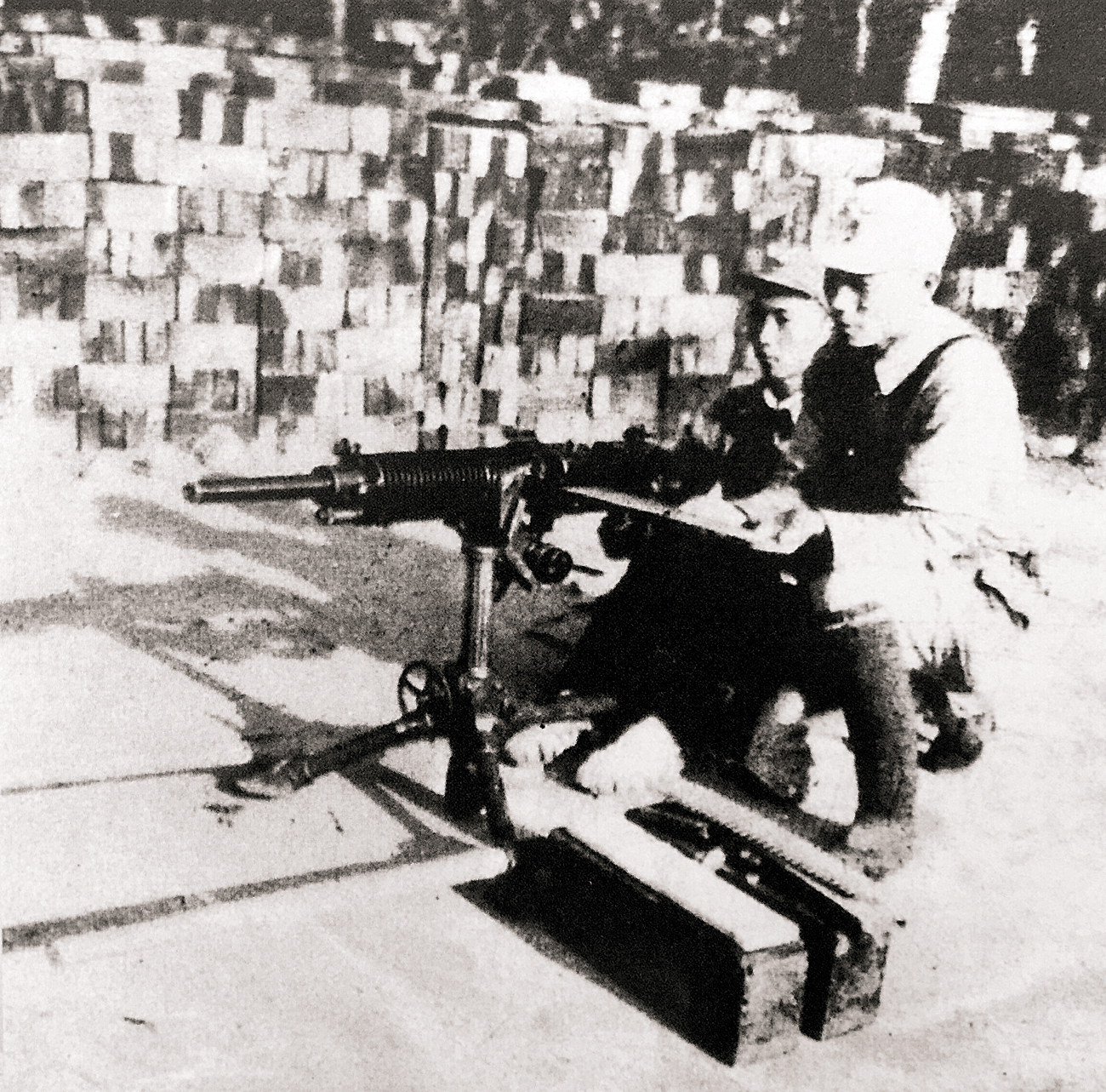 1944年8月,八路军山东军区胶东军区部队在马连庄战斗中缴获的重机枪。