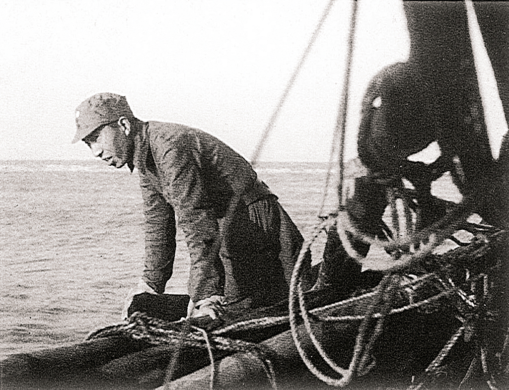 1944年夏,八路军山东军区滨海军区部队海防队在海上巡逻。