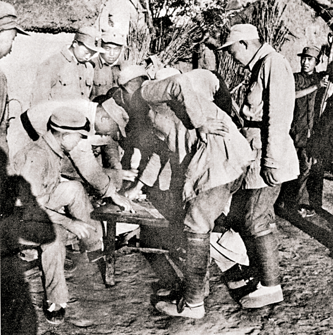 1944年11月,参加莒县战役的战士们在决心书上按手印。