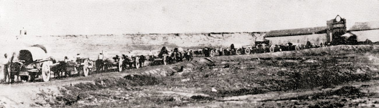 1944年8月,八路军山东军区胶东军区部队经过艰苦作战,收复大泽山区。图为向大泽山区开进的炮兵部队。