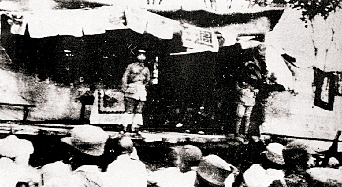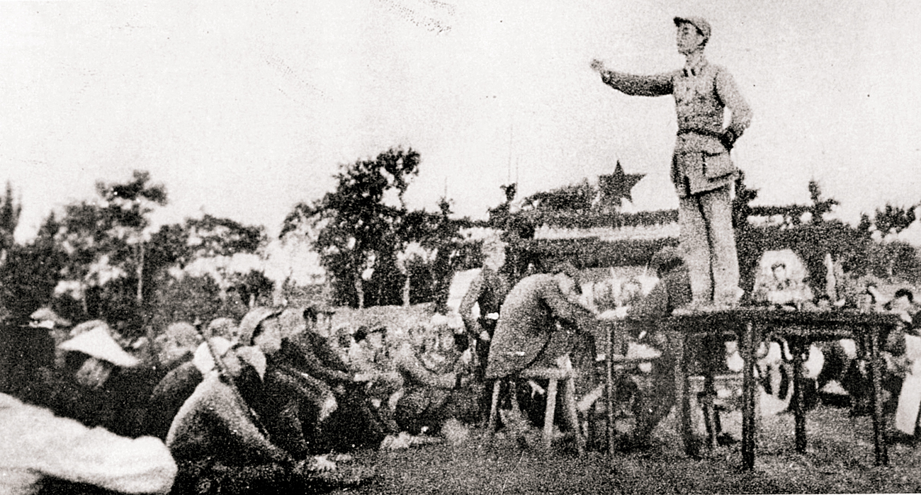 1944年,八路军山东军区胶东军区政委林浩在作政治报告。