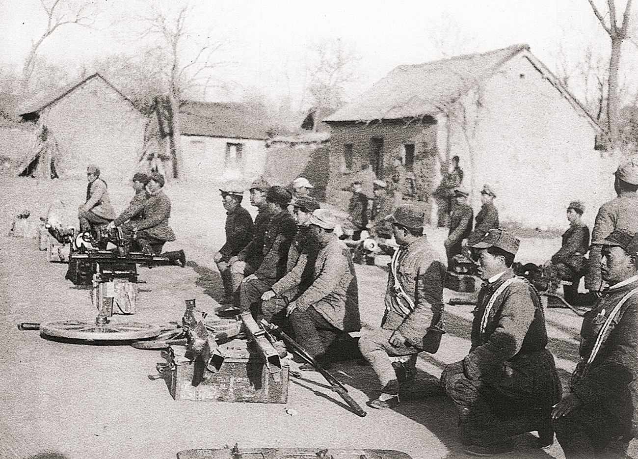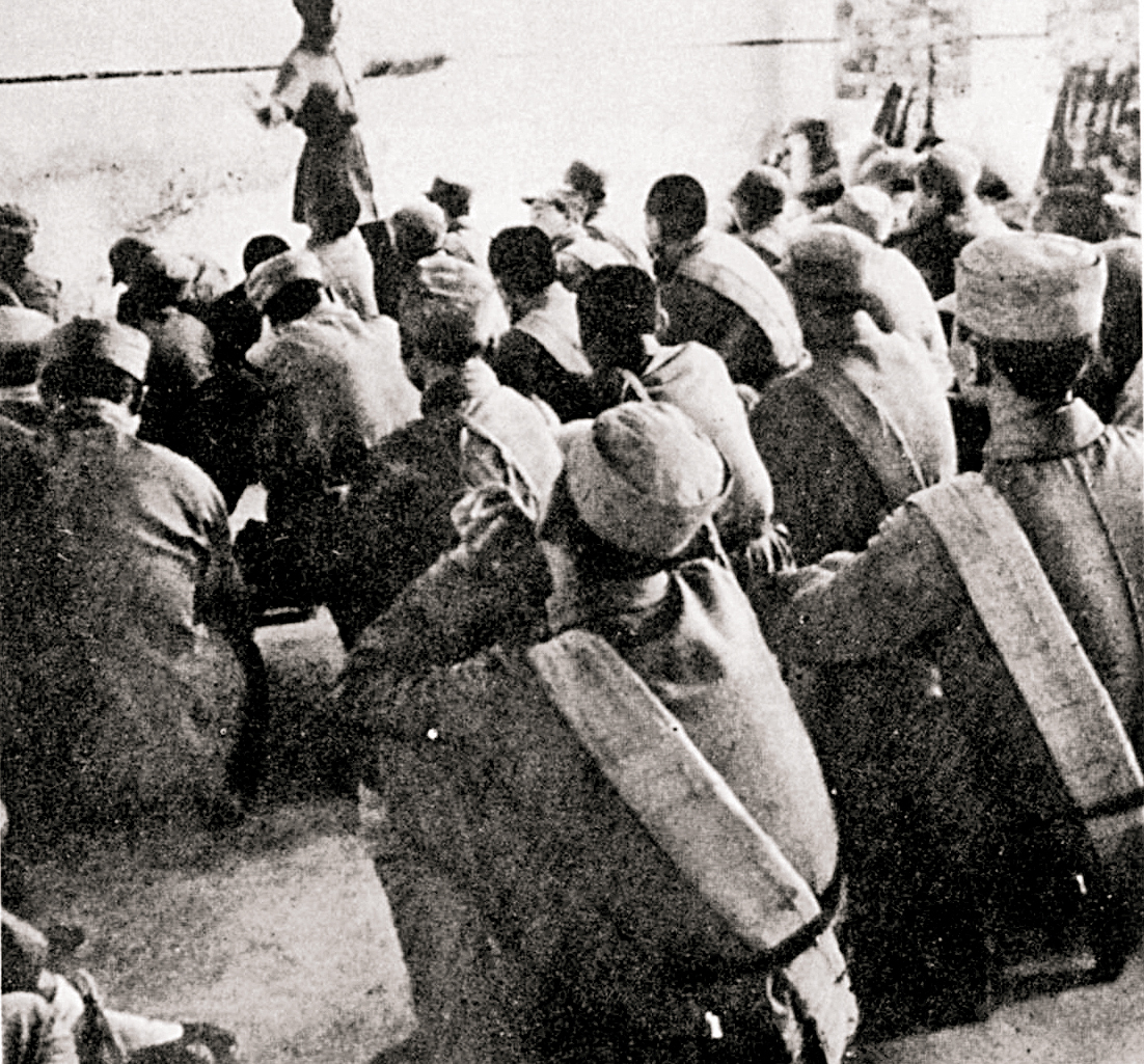 1939年3月至1940年9月,八路军山东纵队根据八路军总部的部署,进行了4次整训,使部队的军事、政治素质都有了很大提高,部队整编为4个旅,4个支队,兵员发展到4.9万人。图为八路军山东纵队某部召开整训会议。