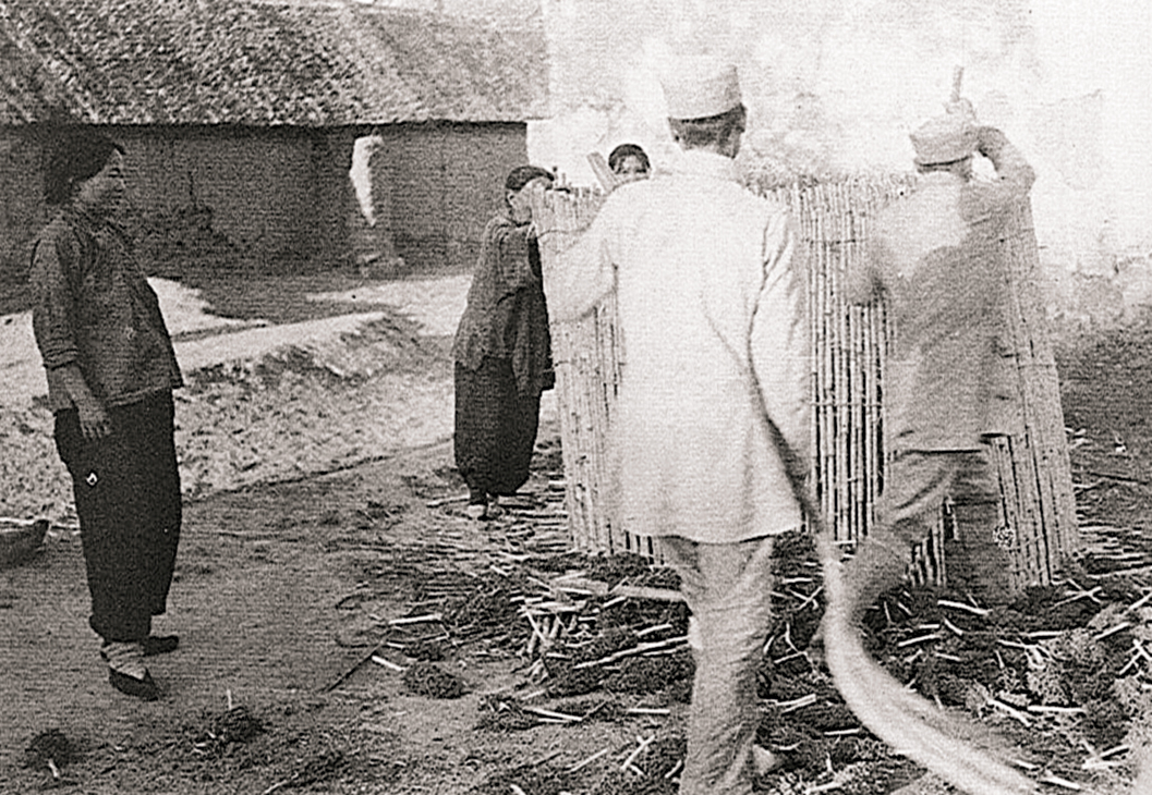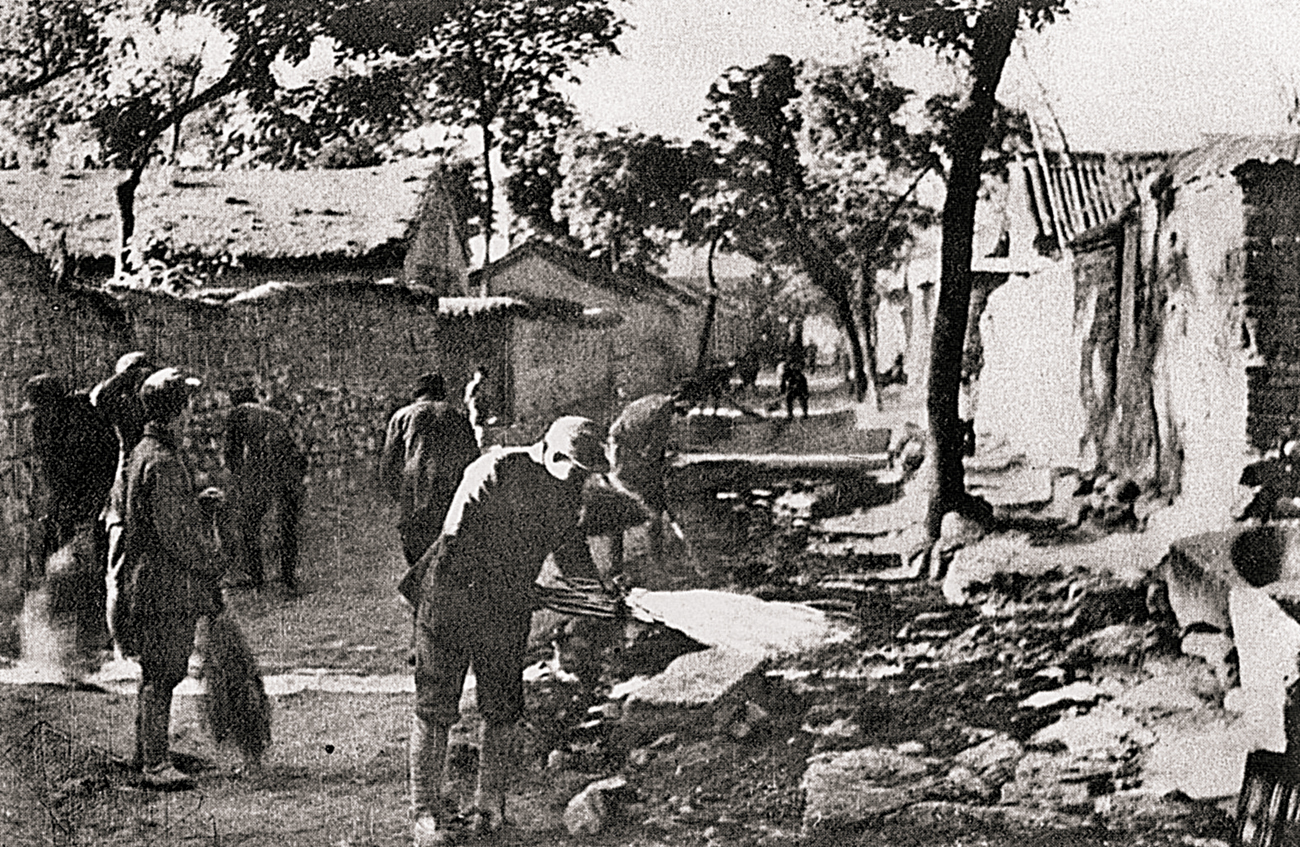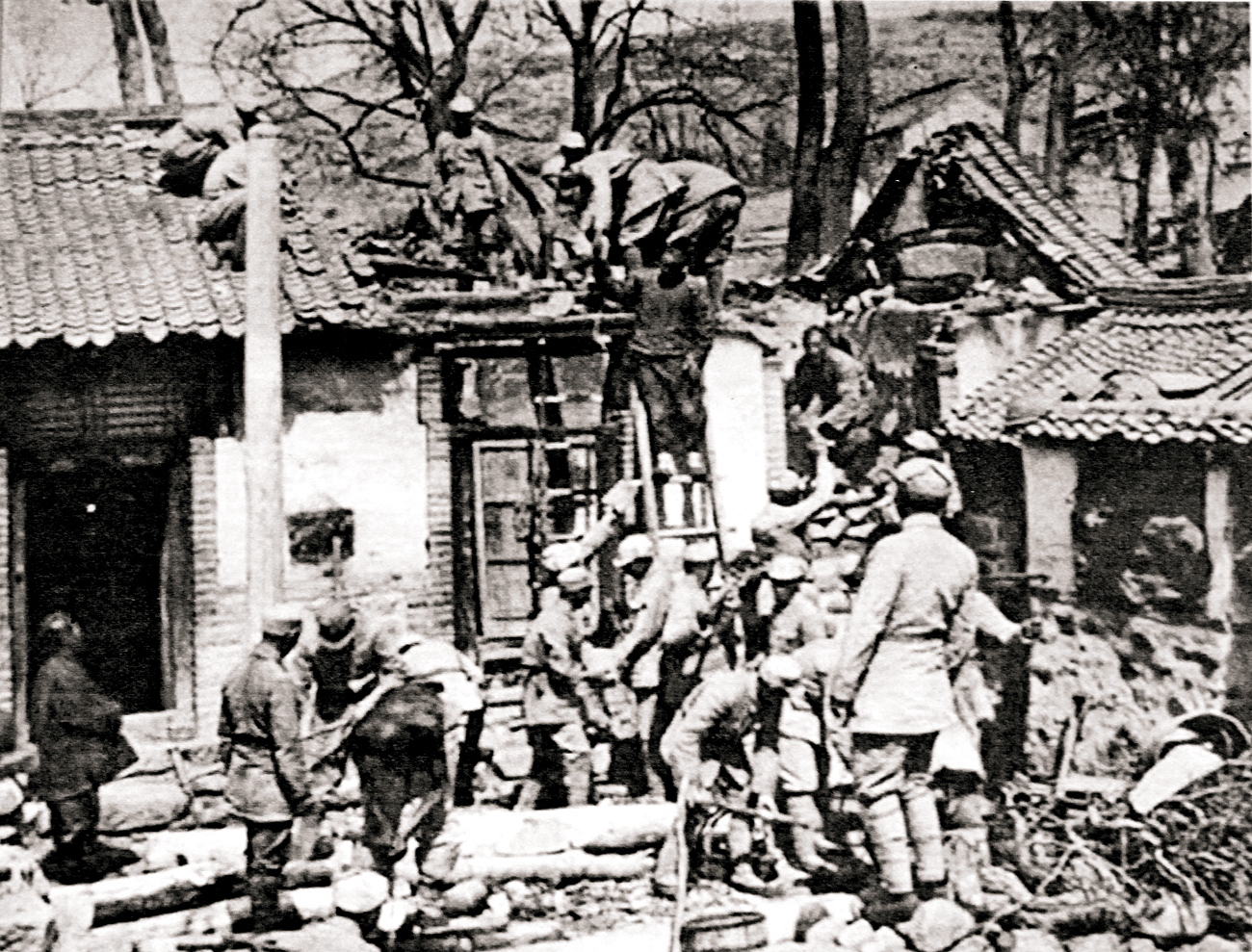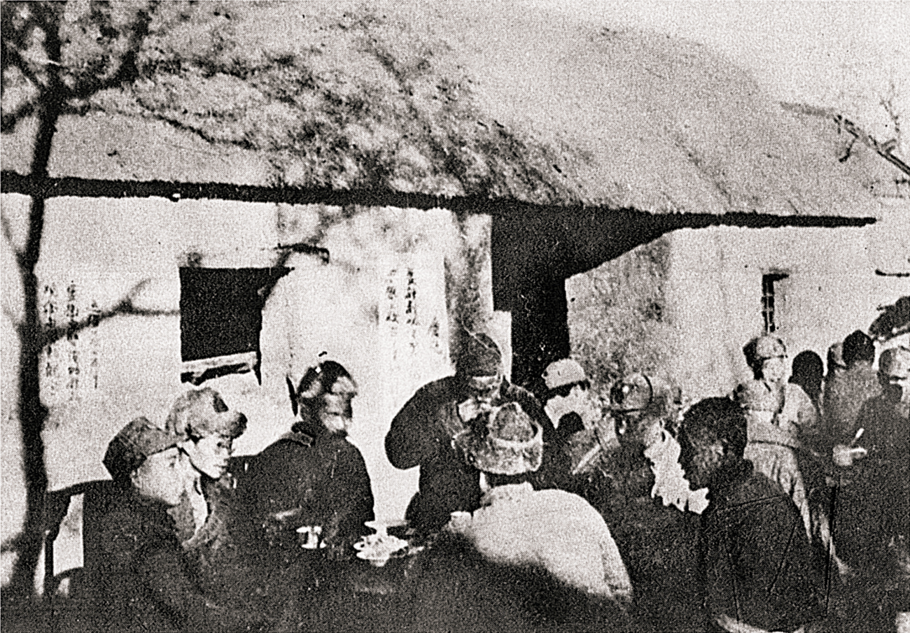 在人民群众住房困难的村子,八路军战士就露宿街头。