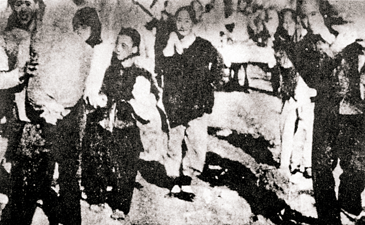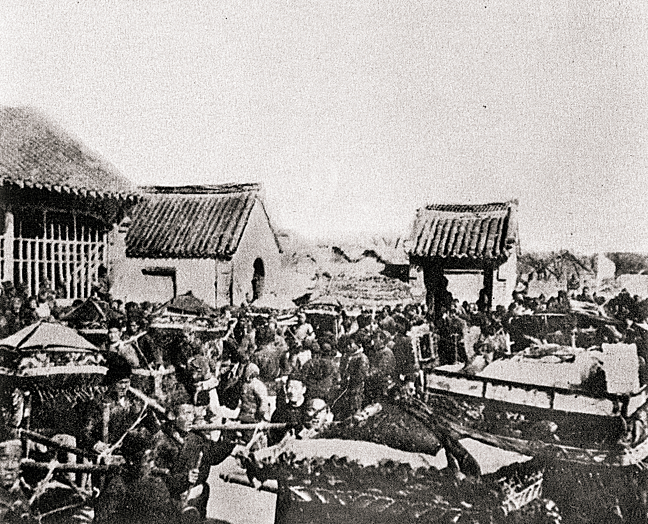 1943年春节过后,沂蒙抗日根据地掀起参加八路军的热潮。图为欢送参军青年。