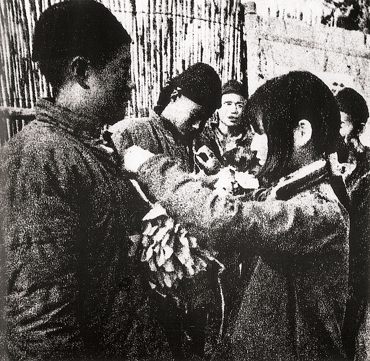 八路军是人民的子弟兵,军爱民、民拥军的动人事迹数不胜数。图为根据地群众自动来到村头,慰问过往的八路军伤病员。