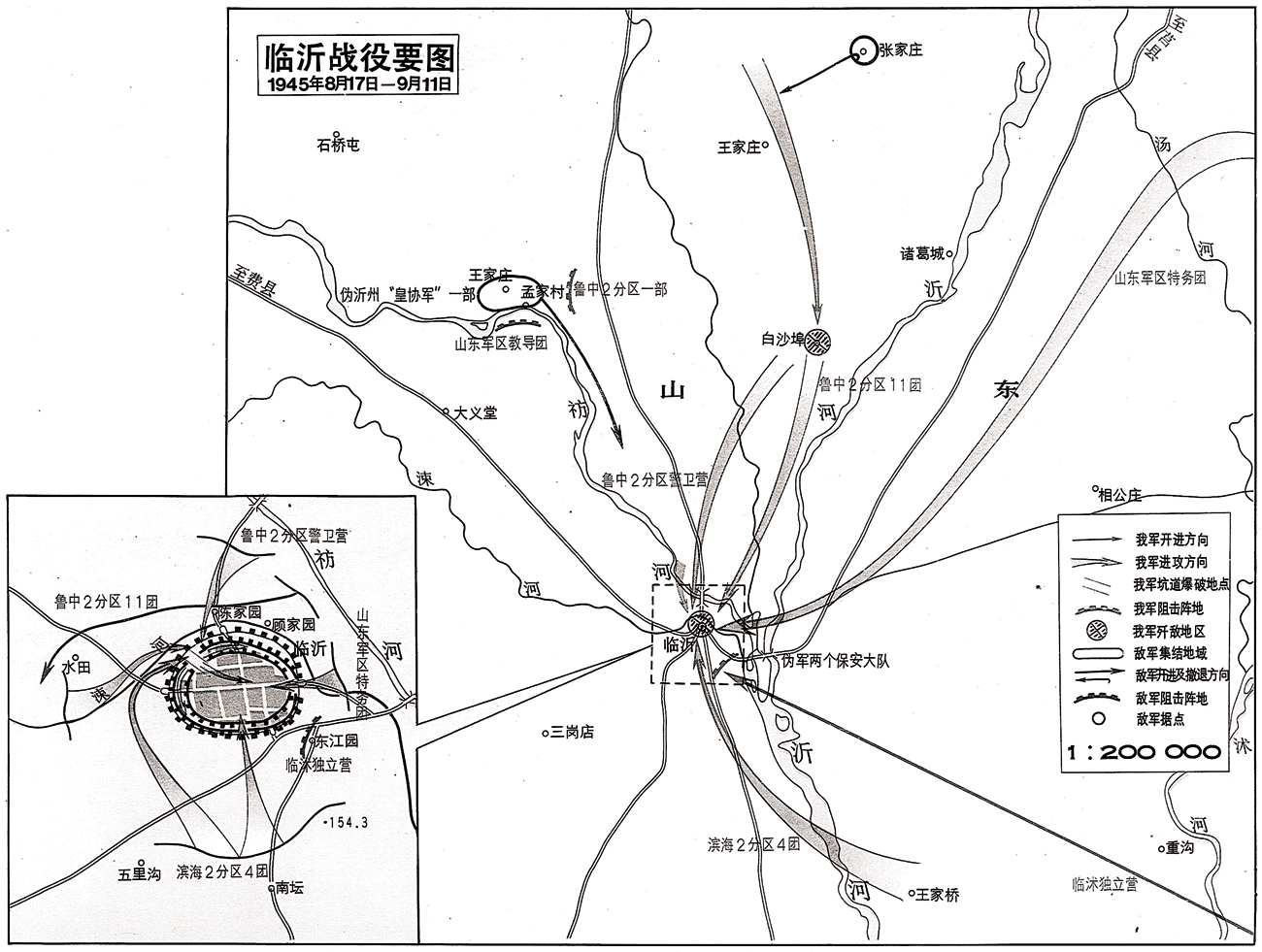 1945年8月17日至9月11日,抗日战争大反攻期间,八路军山东军区滨海、鲁中军区部队发起临沂战役。