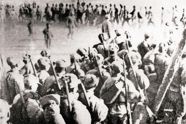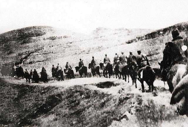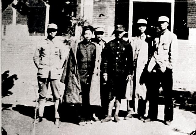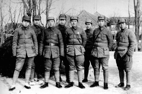 1939 年冬,八路军山东纵队政委黎玉(右四)率巡视团赴胶东抗日根据地视察。