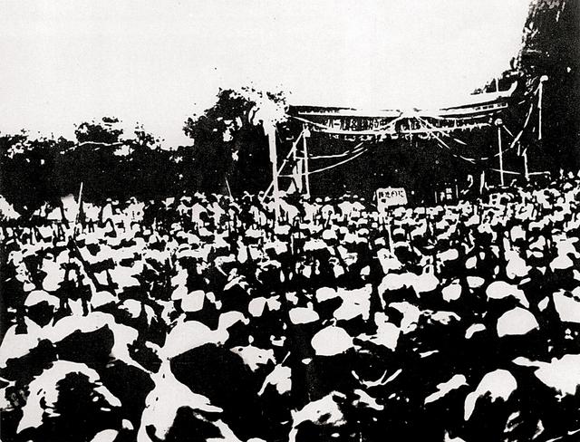 1938 年9 月八路军第五支队在掖县沙河镇召开成立大会