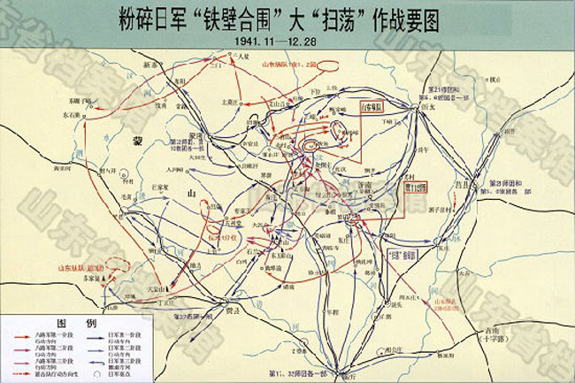 1941年11月2日,日军调集5万余日、伪军,对沂蒙山区发动空前规模的大“扫荡”。11月5日,日军2万余人向山东分局领导机关、八路军一一五师师部驻地沂南县留田村一带包抄,一一五师政委罗荣桓指挥部队,借夜雾向敌人驻扎在临沂的大本营方向突围,巧妙地闯过了三道封锁线,不费一枪一弹,胜利地突出了重围,粉碎了敌人的大围歼,被太平洋国际学会记者、德国友人汉斯·希伯赞誉为“无声的战斗”。