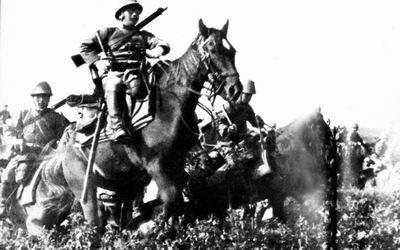1938年徐州会战日军骑兵顺京汉铁路,在河南新德附近追赶中国军队