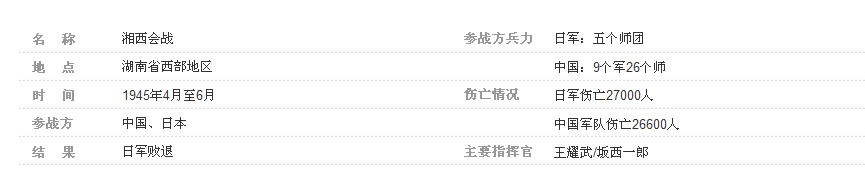 湘西会战也称雪峰山战役,是中国人民抗日战争中的最后一次会战。侵华日军此战目的是争夺芷江空军基地,故又称“芷江作战”。战争起于1945年4月9日,止于6月7日。在双方参战总兵力28万余人,战线长达200余公里。在王耀武指挥下,湘西会战取得了雪峰山大捷,歼敌3万余人。湘西会战最后一仗主战场为怀化溆浦县的龙潭镇、温水乡和邵阳市洞口县的高沙、江口、青岩、铁山一带。战役以日本军队战败而结束。湘西会战的胜利标志着中国抗日正面战场由防御转入反攻阶段。