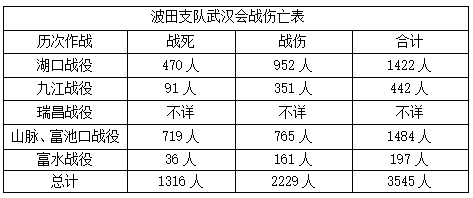 而另一支部队波田支队,笔者根据战报、战史提到的伤亡数汇总如下: