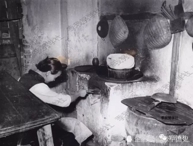 图2、一名母亲正在为家人做晚饭,这所在重庆江边的房屋是美国红十字会提供给难民居住的。当时很多老百姓的房屋被炸毁,无家可归。