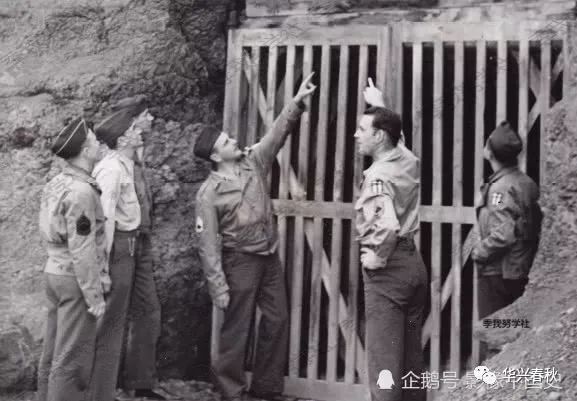 图4、即将离开重庆的美国大兵们参观了一个防空洞的入口。中国一些地方的防空洞是在坚硬的岩石中开凿出来的。