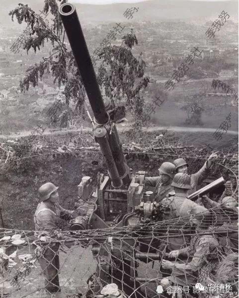 图7、中国陪都重庆郊区一座山上,一个中国防空连队正在进行警戒。过去,日军轰炸机可以肆无忌惮地飞临中国城市进行无差别轰炸。今天由于中国战斗机和防空部队的拦截,它们不能再这样为所欲为了。